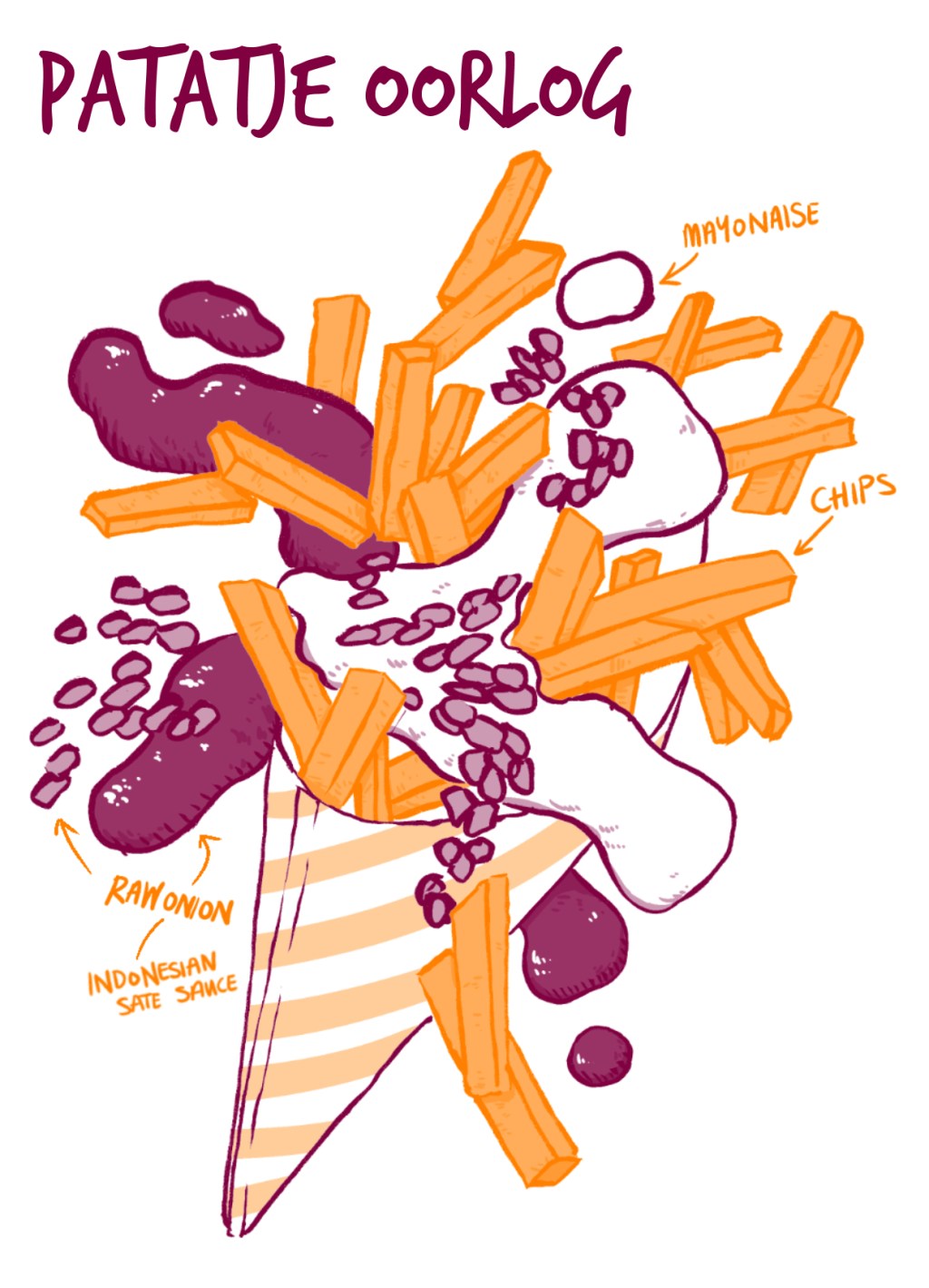 At its core, Patatje Oorlog starts with golden chips that serve as the perfect canvas for the trio of toppings. Mayonnaise provides a creamy base that complements the fries’ crispiness. The star of the show is the indulgent peanut sauce, which adds a savoury and slightly sweet depth of flavour to the dish. Finally, finely chopped onions add a refreshing crunch and a touch of sharpness that balances the creaminess of the mayo and the nutty richness of the peanut sauce.