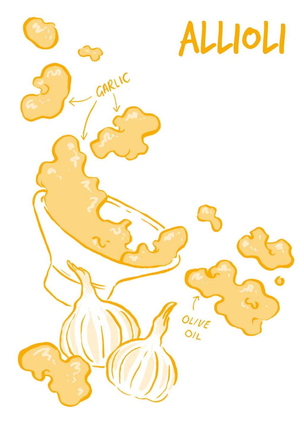 At its core, allioli is a simple yet versatile emulsion, traditionally made by pounding garlic and salt together in a mortar until it forms a smooth paste. Then, a generous amount of high-quality extra virgin olive oil is gradually added while continuously stirring to create a thick and creamy texture. In some variations, egg yolk may be incorporated as an emulsifying agent, lending a more stable consistency to the sauce. The result is a magical concoction that boasts a pungent aroma, a rich garlic flavour, and a silky mouthfeel that elevates any dish it graces.